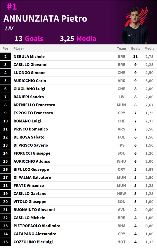 Top Scorers Condividi: Condividi su Facebook (Si apre in una nuova finestra) Facebook Condividi su WhatsApp (Si apre in una nuova finestra) WhatsApp